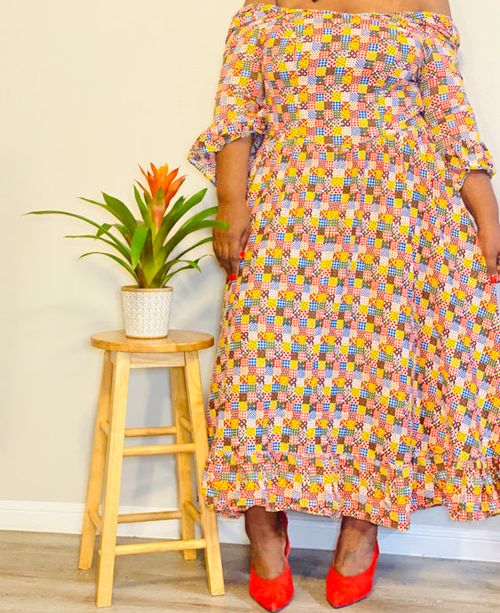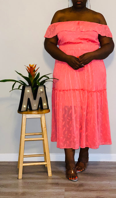 “Samantha” CORAL OFF THE SHOULDER MAXI (14/16)