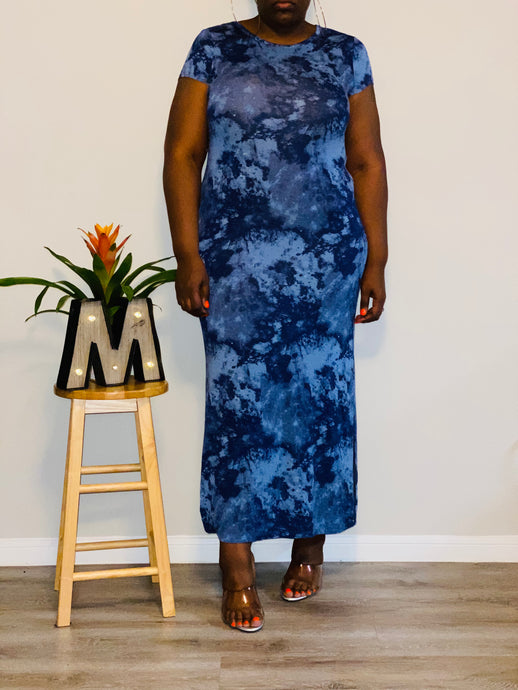 Blue & Black Mesh Print Tie Crop Top (One Size Fits All)