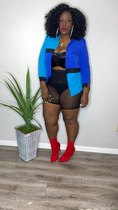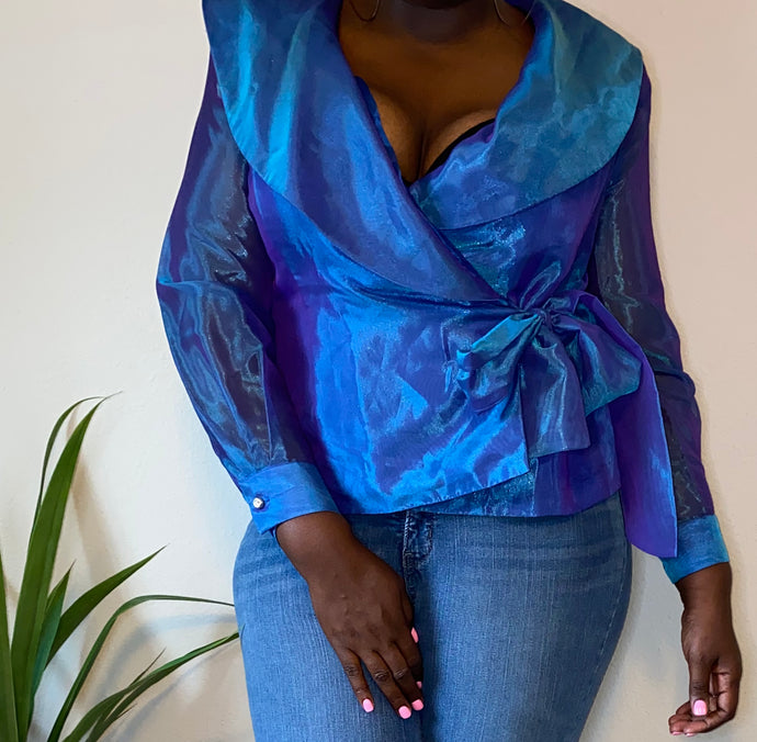 Vintage Blue Iridescent Wrap Blouse (L-XL)