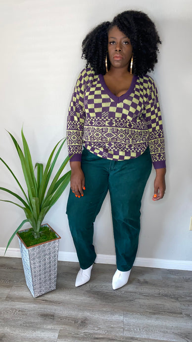 VINTAGE SATURDAY MORNING V-NECK SWEATER (2X)