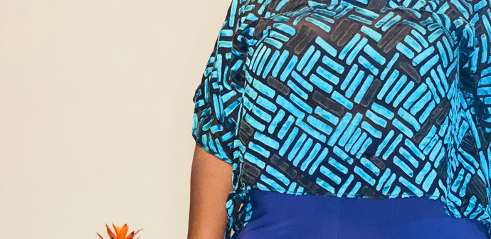 Blue & Black Mesh Print Tie Crop Top (One Size Fits All)