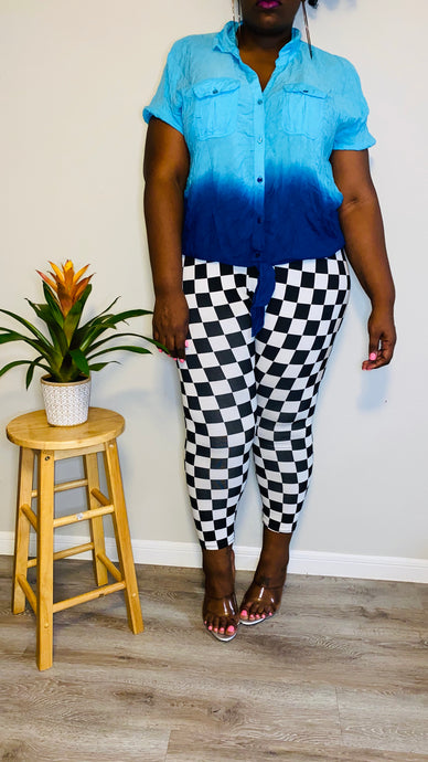 Teal to Navy Blue Ombré’ rayon Button Down (18/20)
